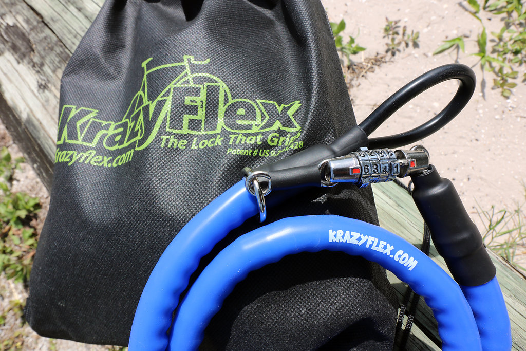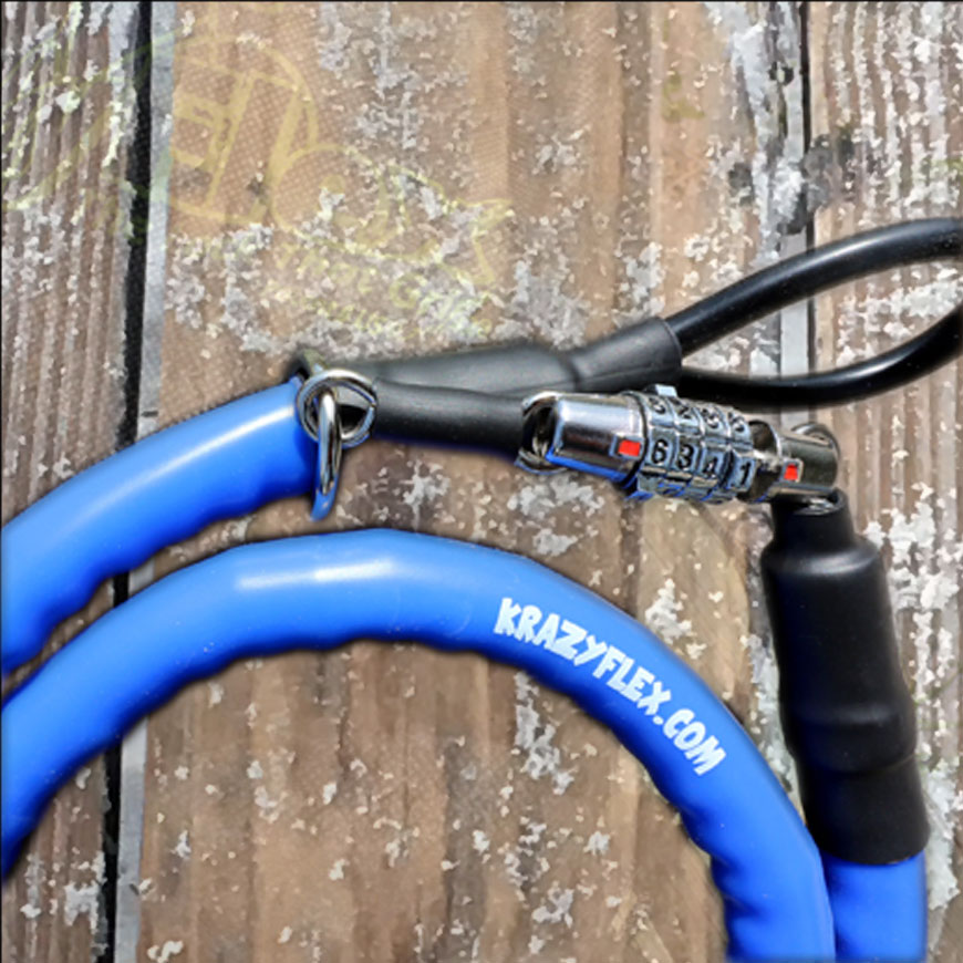 KrazyFlex is a unique new style cable lock. It incorporates a 5mm stainless steel cable in a configuration that allows it to hold its shape, making it much easier to use.